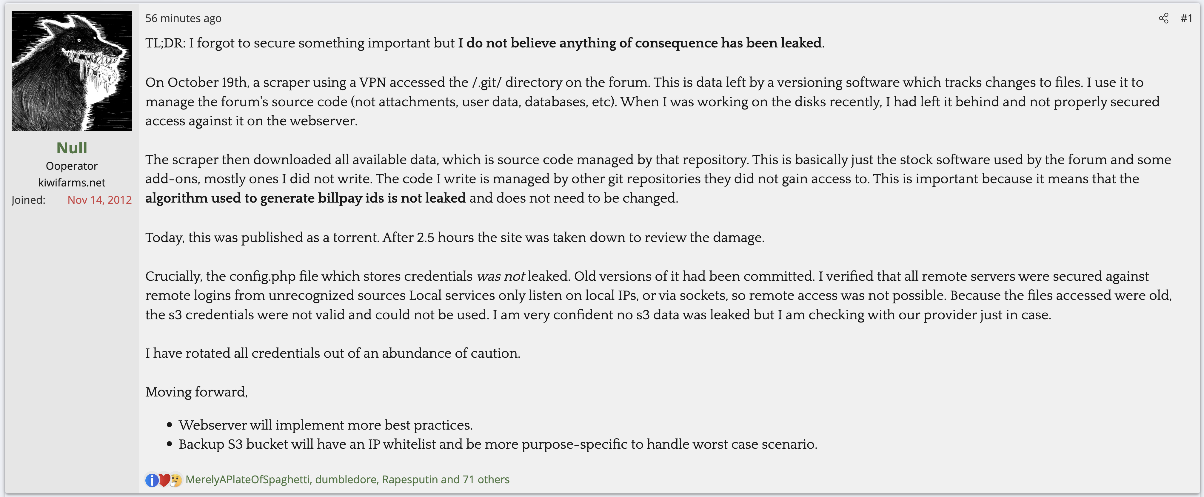 Reason: funny enough, if you try to visit the /archive/ folder on kiwifarms, it will give you 404 error. either josh blocks access to the page or he removed it