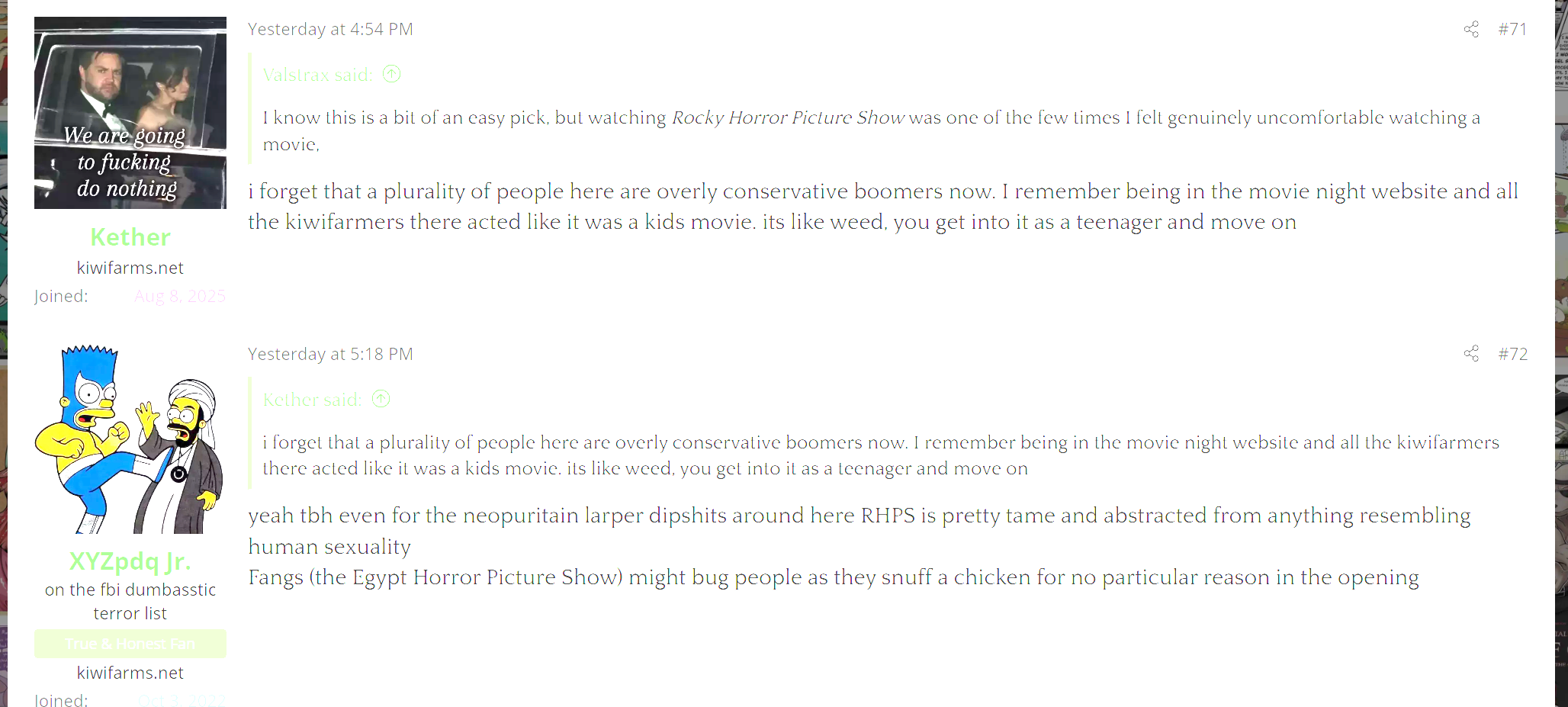 Remember null is so anti-sex now he's not even said he's even liked girls in about a decade, you can make a huge arguement based on everything null has posted that he's gay. he says way more about other men's cocks and asses and bodies than he's ever said about women, outside of his comments about how disgusted he is by women's bodies or sexualized outfits.