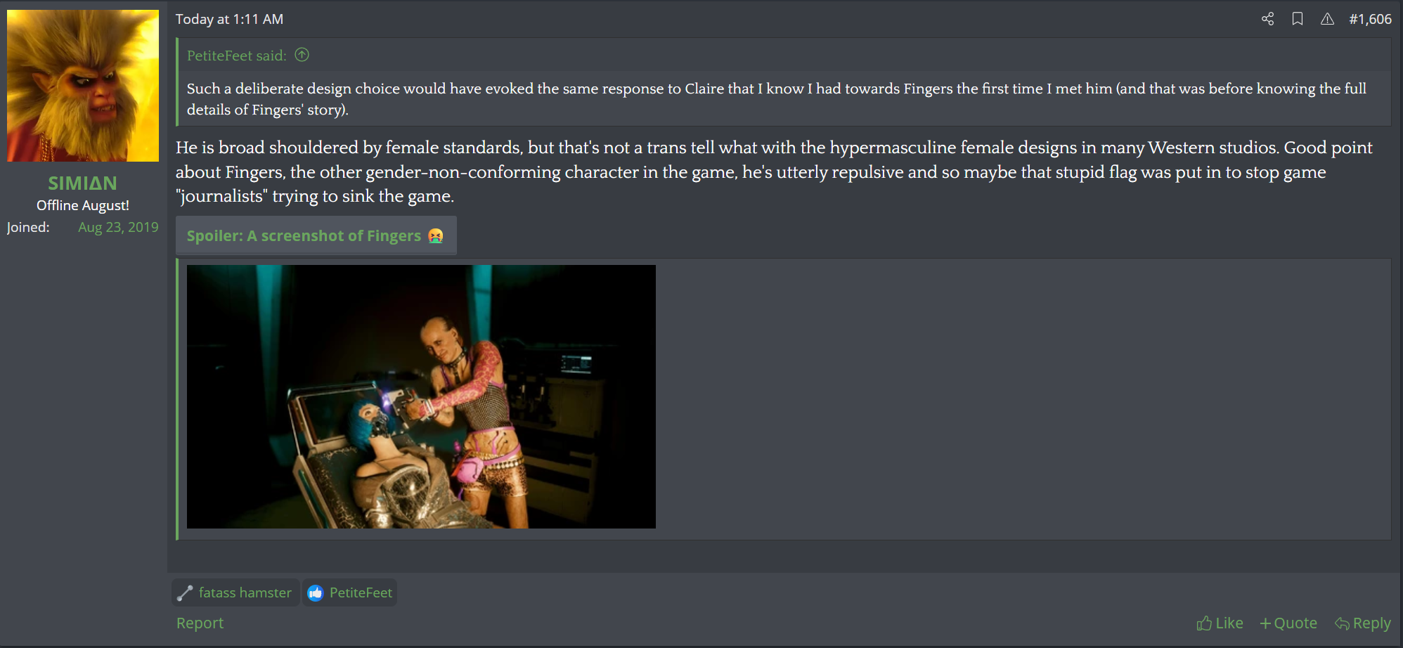 of course they do. do you not see my screencap? the edges of "her" dogshit posts are onionfarms in a different themeThey 100% have seen at least one of these Twitter posts on Onion Farms at time, not just once ever, first.![]()