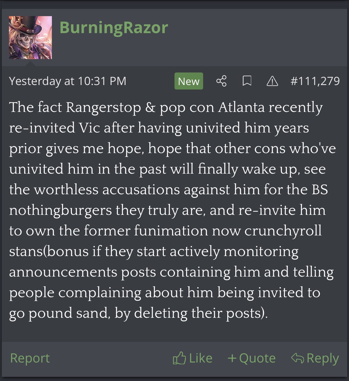 Boobie Bomb An Onion Among Onions Today at 11:02 AM #17,321 Do you really think that is a good idea bro? Cocksuckers these people are…. Reason: Yes, BurningRazor has a Twitter account, and he is annoying there as on KiwiFarms.