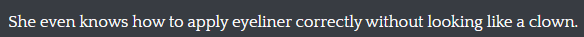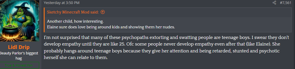 There was a stream she did... she tried reading a childs version of the David vs Goliath (two OT terfs), she was terrible, she has no rhetoric other than "I don't like it". The thing about terfs... they are just as dis cog as trannies, they have no logical argument or system, just shrill emotive language, then cringe flirting, when that fails, then all out sectionable rage.
