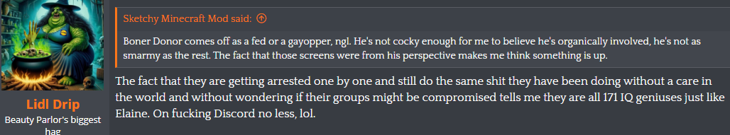 Poser (and joshy) both have that, they are too egotistical to see that they are the people who let in the narks and sneaks. She tried some Political Party nonsense and lost her deposit, so... maybe she isn't going to be much of an asset (regardless if she knows it or not).
