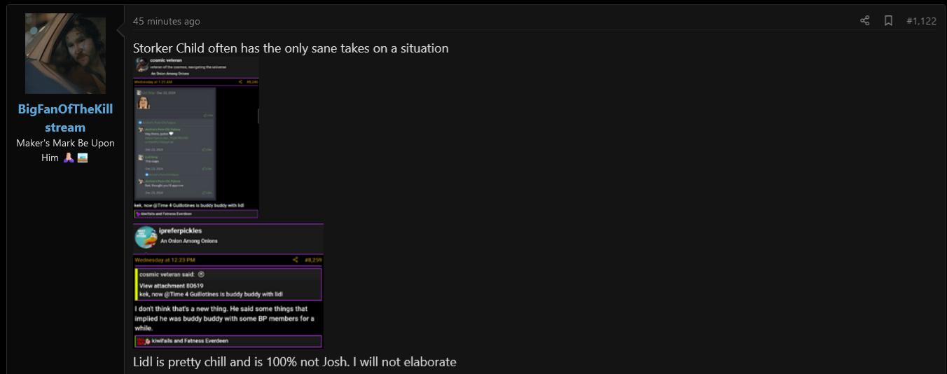I think it's pretty obvious Lidl Drip is not Null. Also, apparently Daniel thinks @thefrogninja is someone named Ethan Hatchett/The Laughing Daimyo.Daniel Lopez claims that Lidl is absolutely not Josh but he will not elaborate.
