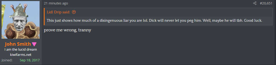 He's really doubling down on his enabling of Lidl's bullshit on the forum: