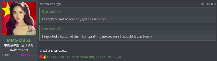 I still think Lidl (and the Cuck Duck 3322, for that matter) are Dyn, which is why he cares so much. Literally no one else is crying about "her" absence, not even the fatties in BP. It was just his latest failtroll.