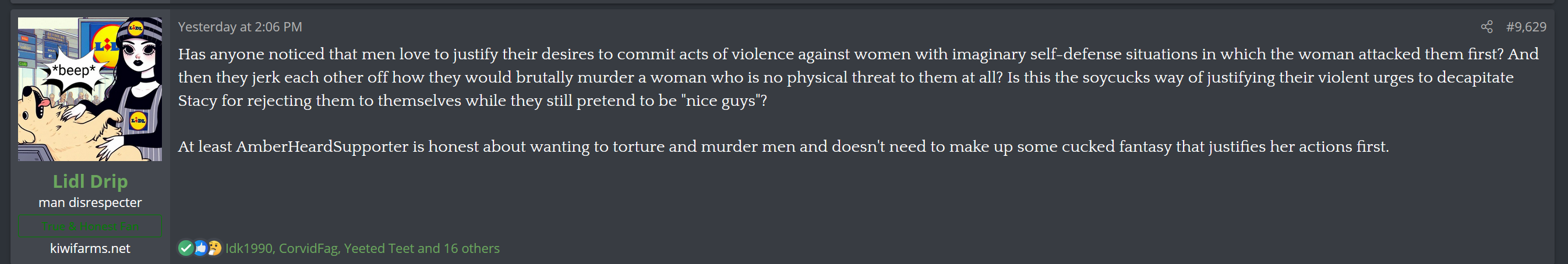 He does kind of have a point, some men make up "self defense" situations where they punch a woman and it just comes off like they want to hit women. But that's more an MRA autist thing than an average guy thing.
