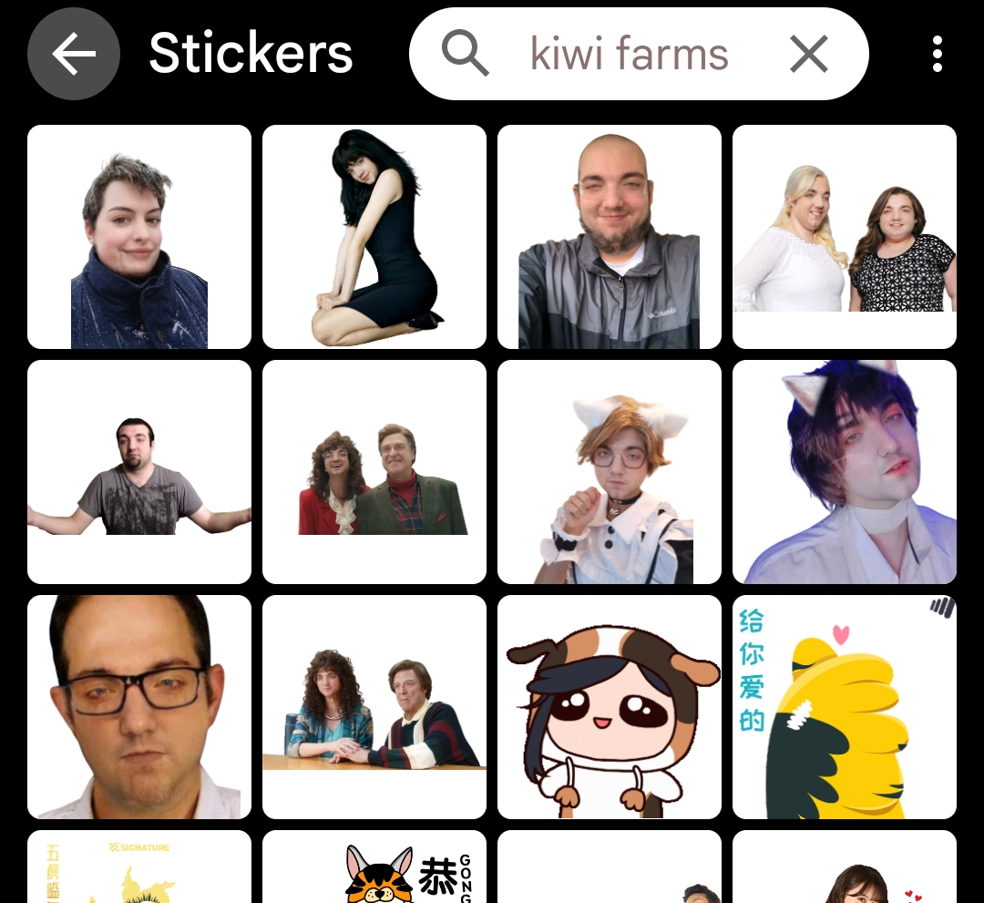 That means either kiwis are camping out here and running to tattle so they can defend m'lady null's honour, or it means they're using kiwi farms gifs and emojis in messages, probably with other kiwis, and found them organically and were so offended they had to complain.