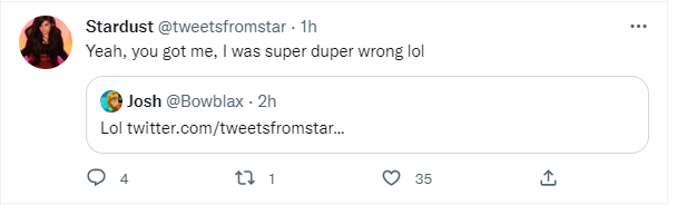She hasn't, but the nice thing about Stardust is if you point her to something, she will look into it.