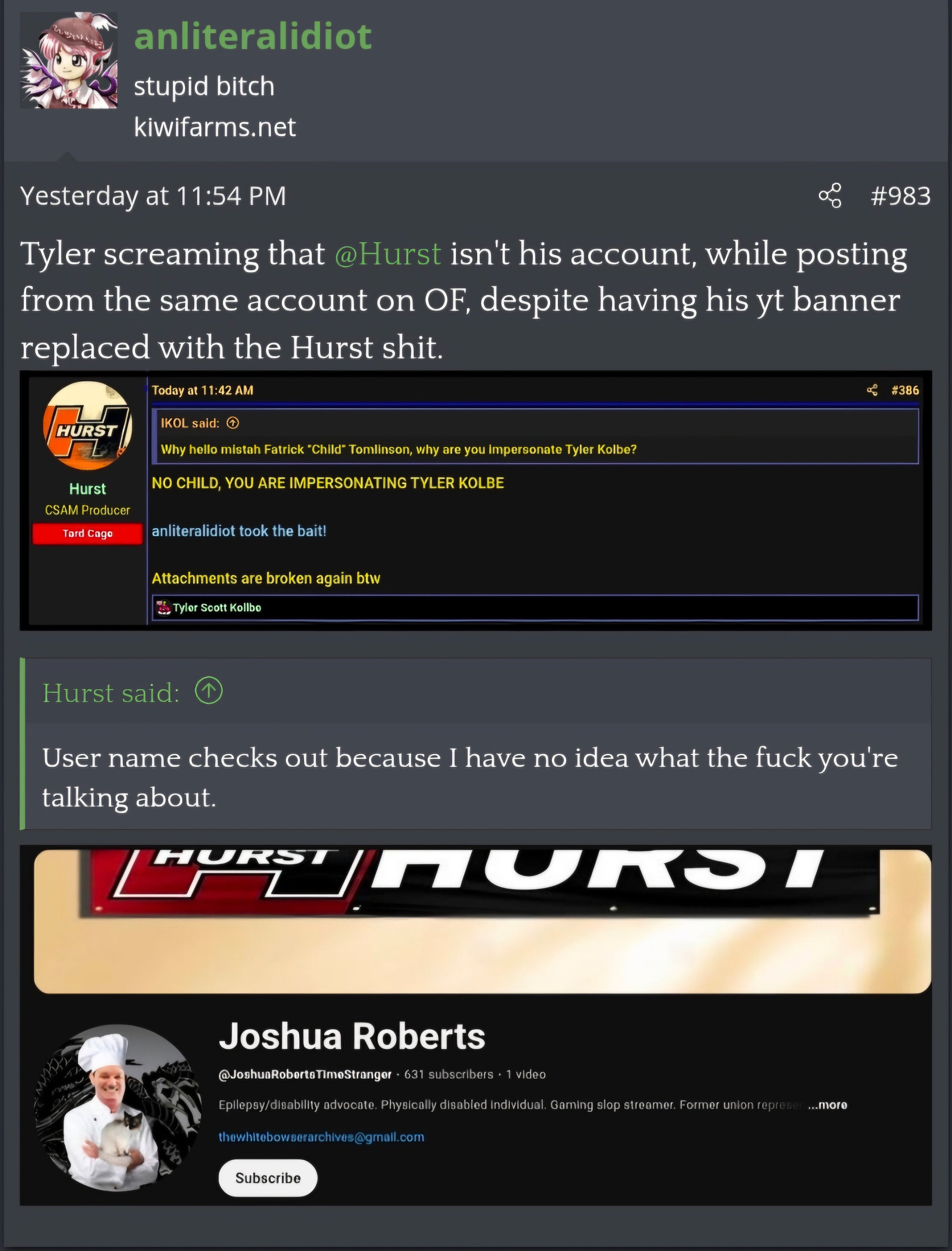 The Tyler containment thread - this user has somehow united both kiwifarms and onion farms against him by just being that annoying