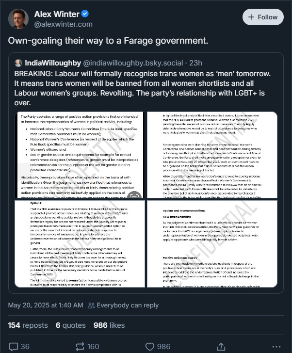 eat shit niggerSeems like UK Labour has finally conceded something the Dems still cannot bring themselves to do: TRA fucking destroyed the left